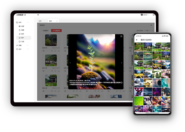基于浏览器的局域网跨平台文件管理工具, 将个人手机、平板作等安卓设备为局域网内的服务器,通过同一局域网内的其它计算机、智能手机等设备的浏览器实现浏览手机文件、上传文件、下载文件、播放视频、浏览图片、 传输数据、统计文件等。