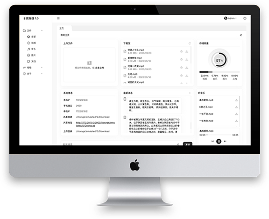 支持Windows、Mac、Linux、iOS等平台设备,抛弃传统数据线传输文件的方式,实现跨平台管理手机文件、数据传输、在线阅读等功能,轻松将手机打造成学习、办公、娱乐于一体的个人数字助理。