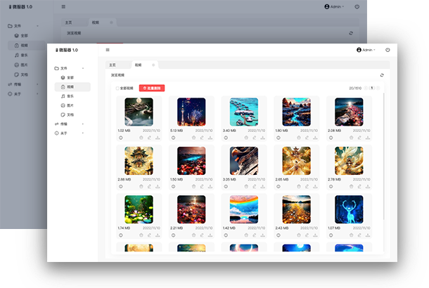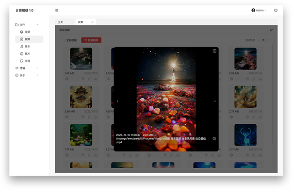 通过浏览器的直观展示手机视频内容,支持视频播放、重命名、下载、删除。 支持幻灯片播放、翻页、自定义页面跳转、下载等。